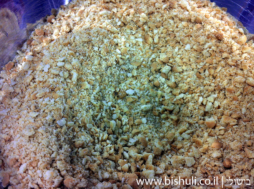 - טחנו במעבד מזון את הביסקוויטים לפירורים קטנים.