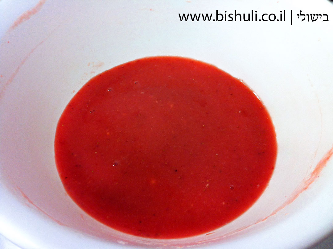 - אפשר להעביר את המחית דרך מסננת דקה כדי להרחיק את ההזרעים הקטנים של התותים אך לא חובה.