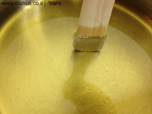 - מחממים סיר בינוני עם שמן לטיגון על להבה בינונית, בודקים אם השמן חם בעזרת כף עץ שמכניסים לתוך השמן. צריכים להיות בועות קטנות מאוד מסביב.
