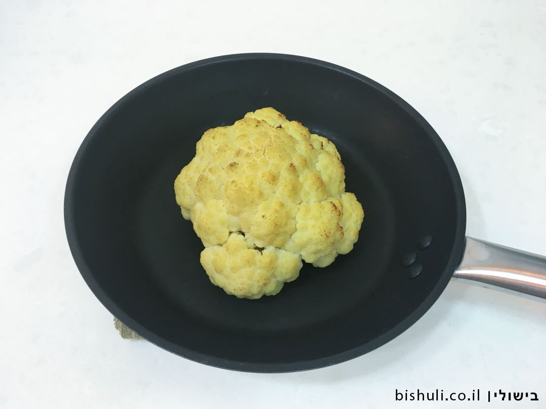 8. מוציאים את הכרובית ומעבירים בזהירות לצלחת הגשה. (ניתן להגיש במחבת אך יש להזהר)